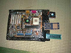 仕様は、MOTHER: ASUS A7V133 CPU : ATHRON/800M MEMORY: 128M ケースも流用する予定だったけど、ついてる電源の容量が小さく、電源の値段も高いので、結局ケースもご購入。しめて、消費税+運送費含めて6万円弱。