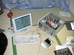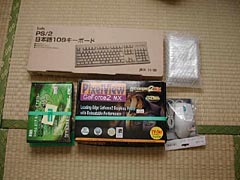 HDDが古くて認識されないみたいなので、結局、また秋葉に買出しに。 GATEWAYはバックアップマシンにすることにして、HDD(45G/17000円),ビデオカード(1万2千円)、キィボード(千円)、マウス(千円)、LANカード(千二百円)等の買い足し。GATEWAYから使ったのは結局FDとCDのみに・・・。 |